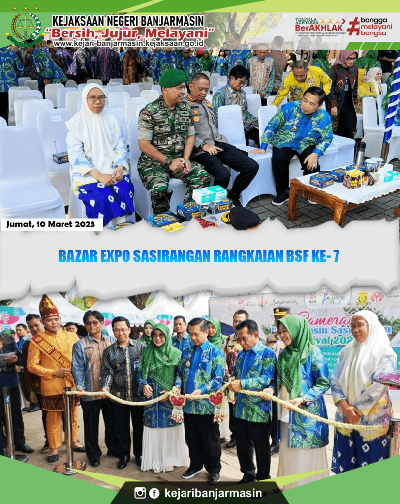 Jumat, 10 Maret 2023. Kepala Kejaksaan Negeri Banjarmasin Dr. Indah Laila Yang Dalam Hal Ini Diwakilkan Kepala Seksi Pengelolaan Barang Bukti & Barang Rampasan Dyah Kusumaningtyas S, S.H., M.H Menghadiri Acara Bazar Expo Sasirangan Rangkaian Bsf Ke- 7 bertempat di Siring Menara Pandang Banjarmasin.