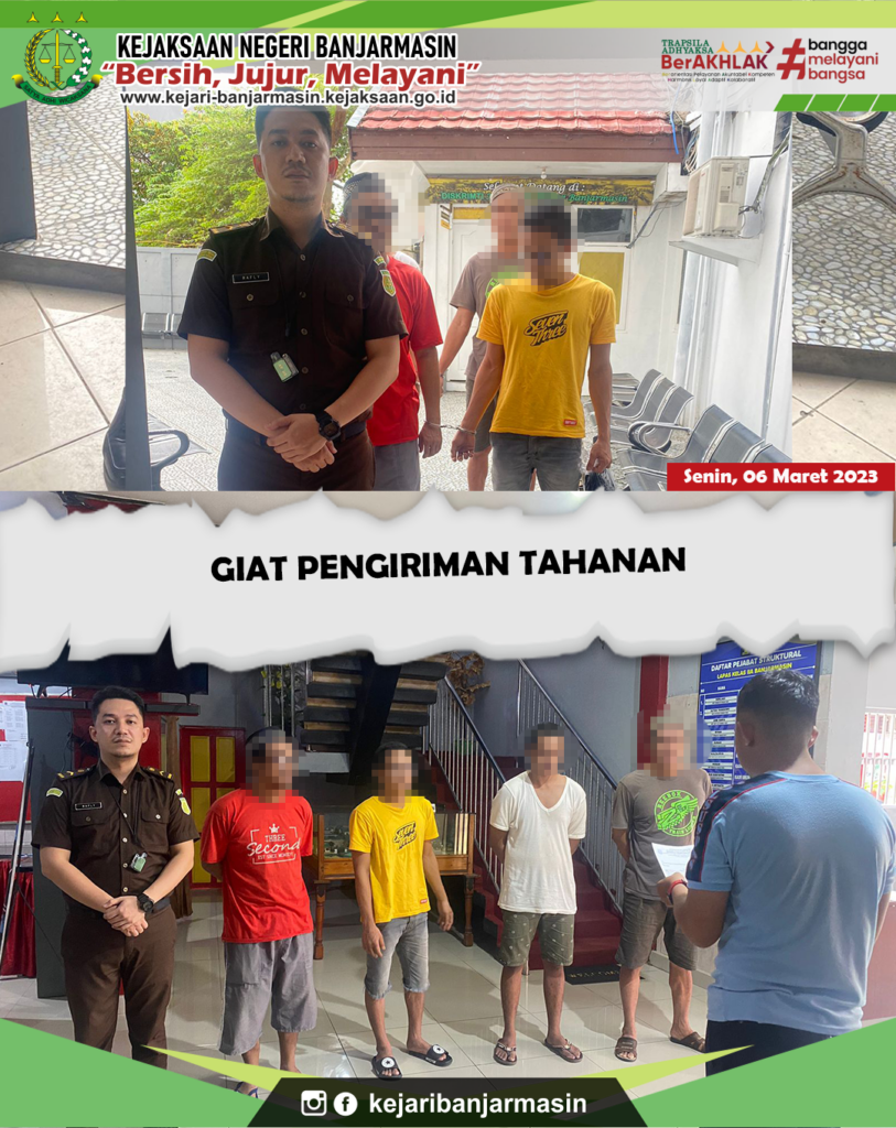 PIDUM Giat Pengawal Tahanan Mar 13, 2023 admin 0 Comment Senin, 6 Maret 2023.Pengiriman Tahanan Tahap 2 Ke LP Banjarmasin.