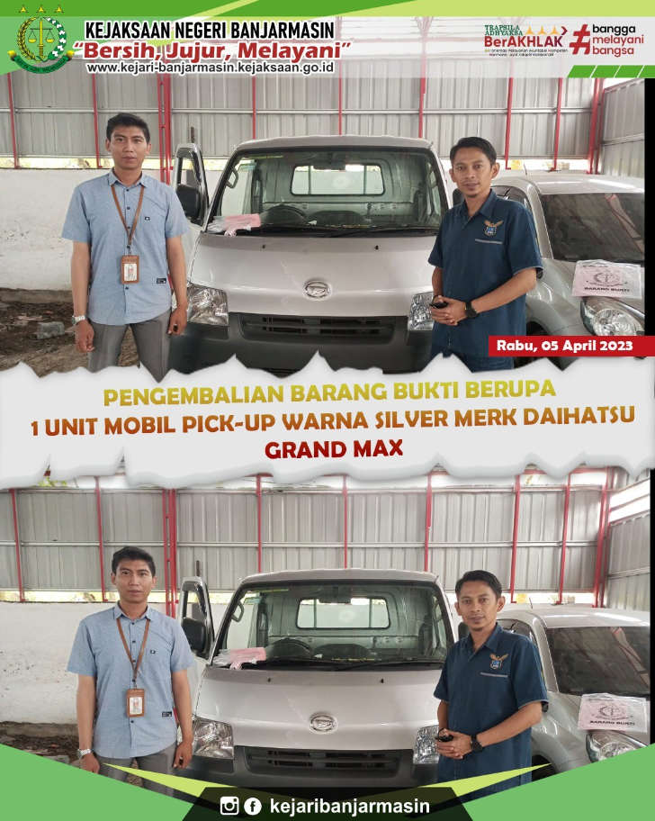 Telah Melaksanakan Pengembalian Barang Bukti berupa 1 unit Mobil Pick Up warna silver merk Daihatsu Gran Max DA 8283 PW Terpidana Indra Wahyu Diansyah Bin Sahrus Melanggar Pasal 351 ayat (1) KUHP