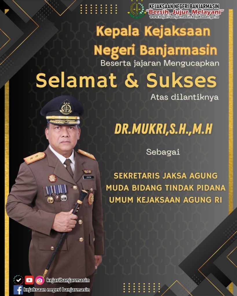 Kepala Kejaksaan Negeri Banjarmasin Beserta Jajaran Mengucapkan Selamat & Sukses atas dilantiknya Dr. MUKRI, S.H.,M.H Sebagai Sekretaris Jaksa Agung Muda Bidang Tindak Pidana Umum Kejaksaan Agung RI
