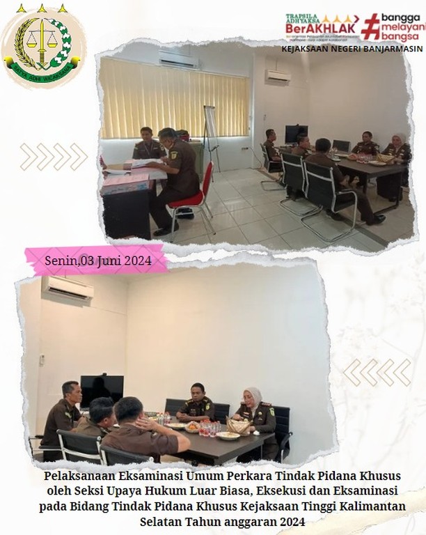 Pelaksanaan Eksaminasi Umum Perkara Tindak Pidana Khusus oleh Seksi Upaya Hukum Luar Biasa, Eksekusi dan Eksaminasi pada Bidang Tindak Pidana Khusus Kejaksaan Tinggi Kalimantan Selatan Tahun anggaran 2024