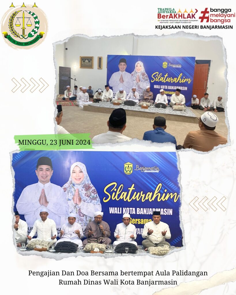 Bahwa pada hari Minggu 23 Juni 2024 Kepala Kejaksaan Negeri Banjarmasin yang dalam hal ini diwakilkan Kasi Datun Kejari Banjarmasin Dr. Amir Giri Muryawan Menghadiri Undangan Pengajian Dan Doa Bersama bertempat Aula Palidangan Rumah Dinas Wali Kota Banjarmasin.