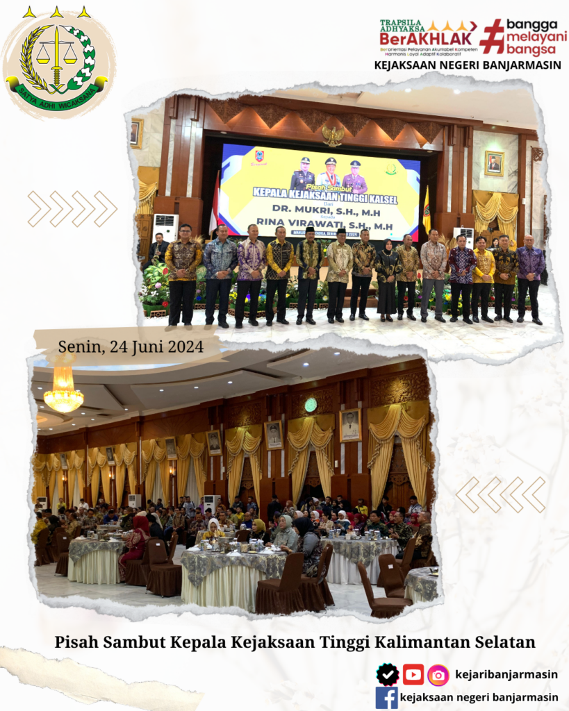 Senin, 24 Juni 2024. Kepala Kejaksaan Negeri Banjarmasin Dr. Indah Laila Menghadiri Acara Pisah Sambut Kepala Kejaksaan Tinggi Kalimantan Selatan Yang Diadakan Oleh Pemerintah Provinsi Kalimantan Selatan.