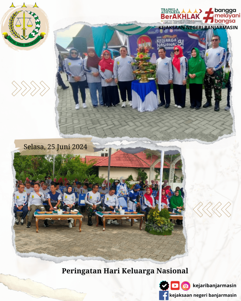 Selasa 25 Juni 2024. Kepala Kejaksaan Negeri Banjarmasin yang diwakili oleh Kepala Seksi Pengelolaan Barang Bukti & Barang Rampasan Ibu Samsiska Dian Ermika Syamsu, S.H.,M.H. Menghadiri “Undangan Peringatan Hari Keluarga Nasional” bertempat di Halaman Sekretariat TP PKK Kota Banjarmasin Rumah Sasirangan Kreatif.