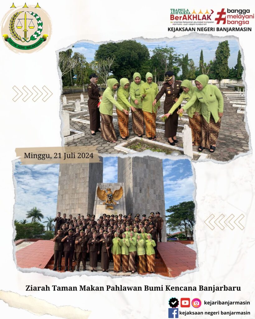 Bahwa Pada Hari Minggu 21 Juli 2024 Kepala Kejaksaan Negeri Banjarmasin Dr Indah Laila Beserta Seluruh Pegawai Dan Anggota Ikatan Adhyaksa Dharmakarini Telah Melaksanakan Ziarah Taman Makam Pahlawan Bumi Kencana Di Banjarbaru.