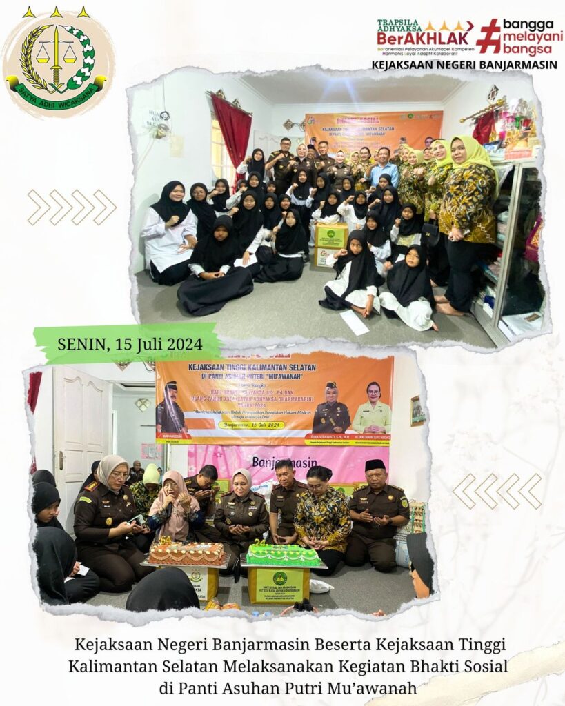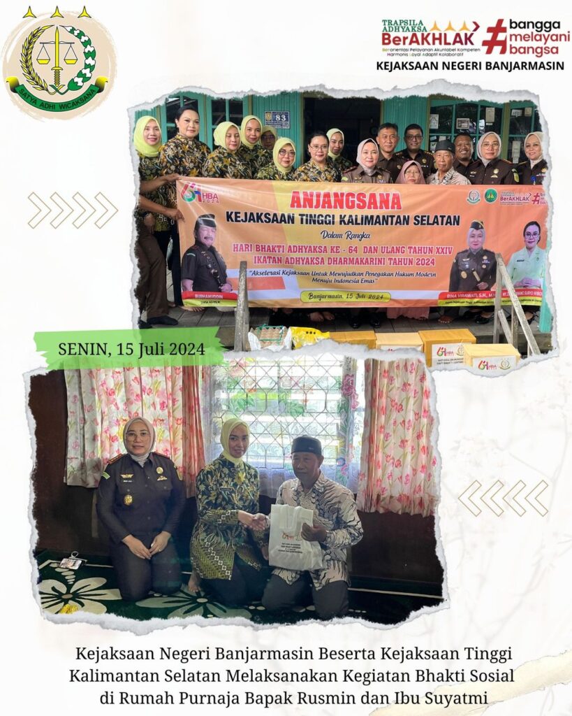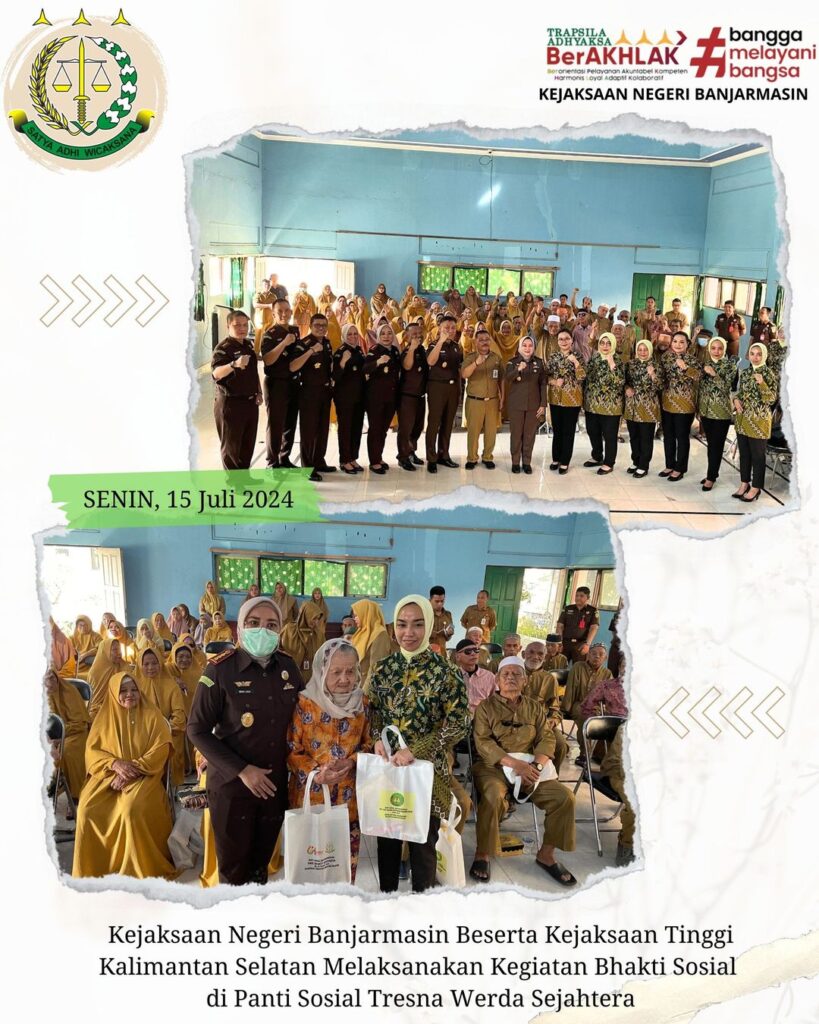 Pada Hari Senin, 15 Juli 2024 Kepala Kejaksaan Negeri Banjarmasin Dr. Indah Laila Bersama Ketua IAD Daerah Banjarmasin Ny. Gisa Dimas Mengikuti Kegiatan Kejaksaan Tinggi Kalimantan Selatan, Bhakti Sosial di Panti Sosial Tresna Werda Sejahtera Dalam Rangka Hari Bhakti Adhyaksa Ke -64 dan HUT XXIV Ikatan Adhyaksa Dharmakarini.