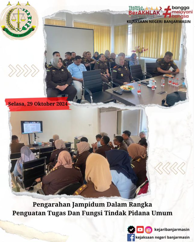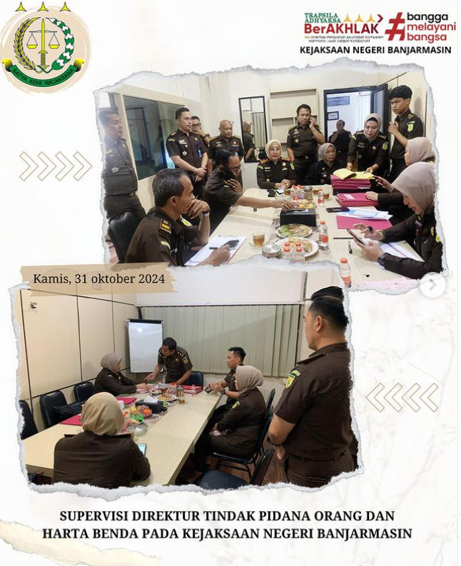 Kamis, 31 Oktober 2024. Supervisi Direktur Tindak Pidana Orang dan Harta Benda Pada Kejaksaan Negeri Banjarmasin.