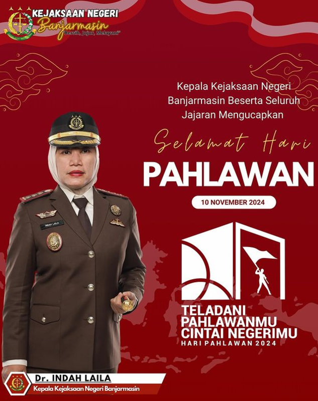 Kepala Kejaksaan Negeri Banjarmasin Beserta Seluruh Jajaran Mengucapkan Selamat Hari Pahlawan