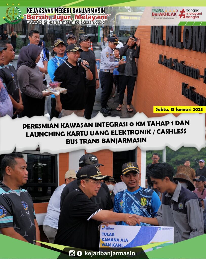 DATUN Peresmian Kawasan Integrasi 0 KM Tahap 1 dan Launching Kartu Uang Elektronik/Cashless Jan 23, 2024 admin 0 Comment Sabtu, 13 Januari 2024.Peresmian Kawasan Integrasi 0 KM Tahap 1 dan Launching Kartu Uang Elektronik/Cashless Bus Trans Banjarmasin.