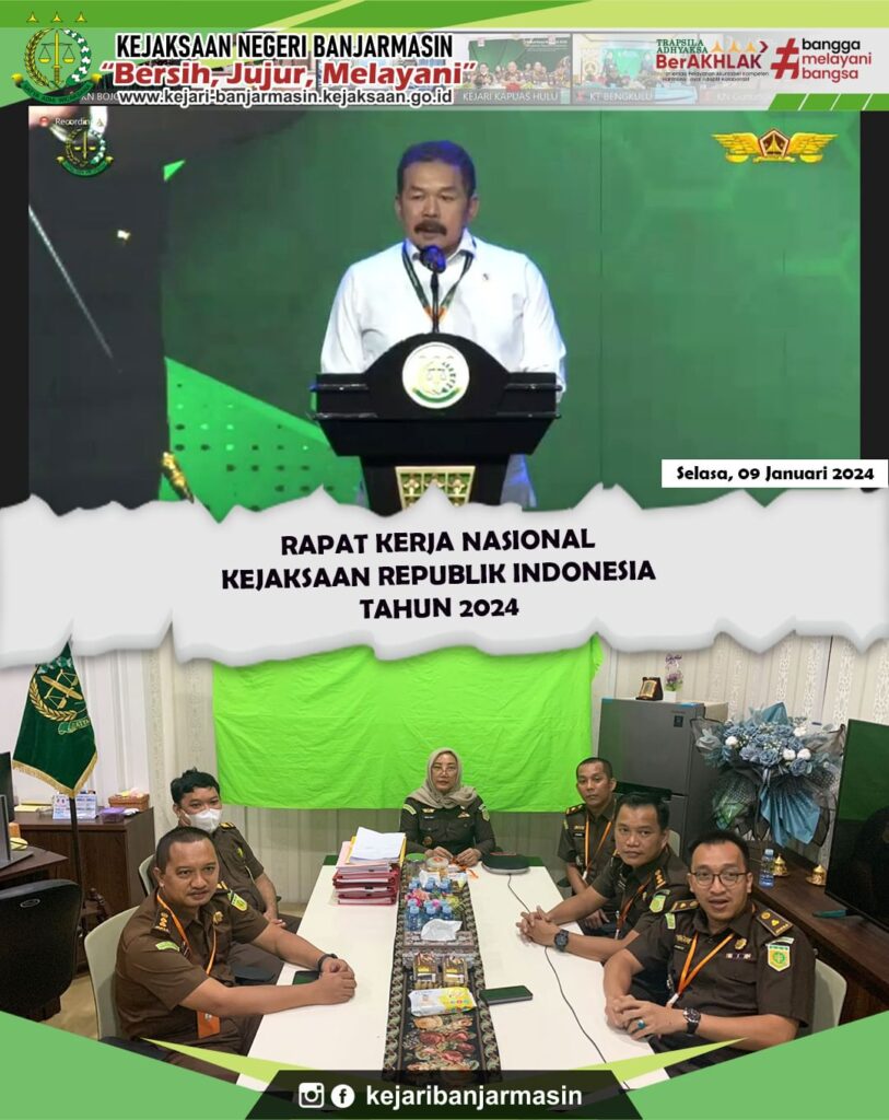 Selasa, 09 Januari 2024. Kepala Kejaksaan Negeri Banjarmasin Dr. Indah Laila Beserta Seluruh Kepala Seksi dan Kepala Sub Bagian Mengikuti Acara Rapat Kinerja Nasional Tahun 2024 Secara Virtual.