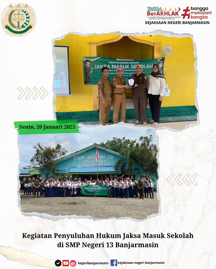 Senin, 20 Januari 2025 Seksi Intelijen Melaksanakan Kegiatan Penyuluhan Hukum Jaksa Masuk Sekolah dengan Tema “Kenakalan Remaja” di SMP Negeri 13 Banjarmasin