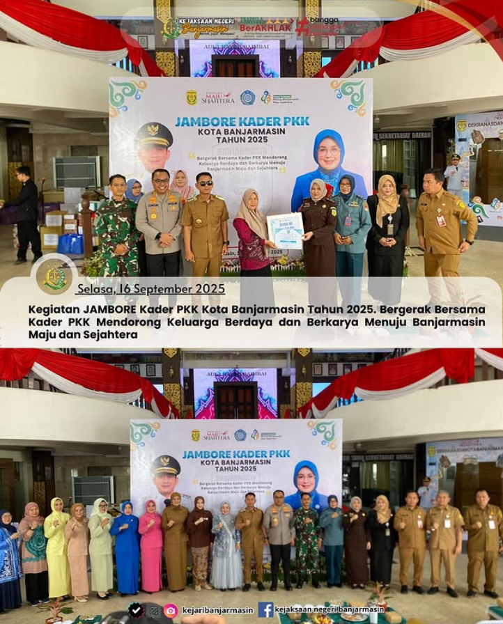 Selasa, 16 September 2025, Kepala Kejaksaan Negeri Banjarmasin yang diwakili oleh Jaksa Fungsional, Ibu Farah Saufika, S.H., M.H., menghadiri Kegiatan Jambore Kader PKK Kota Banjarmasin di Lobby Kantor Pemerintahan Kota Banjarmasin.