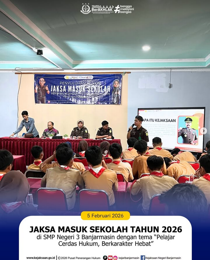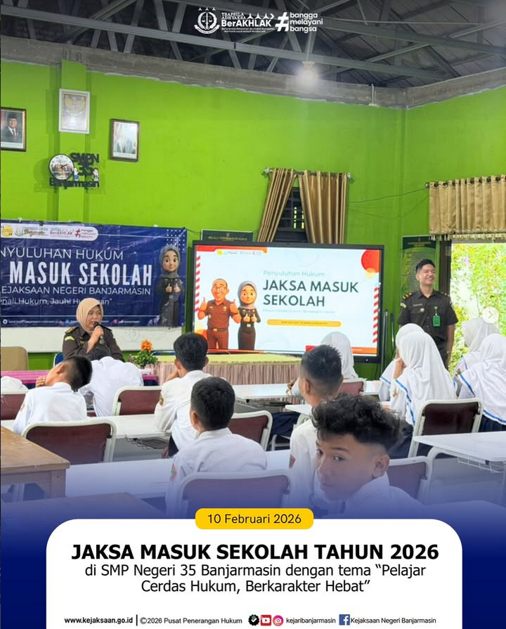 Selasa, 10 Februari 2026, bertempat di SMP Negeri 35 Banjarmasin telah dilaksanakan kegiatan Jaksa Masuk Sekolah (JMS) Tahun 2026.